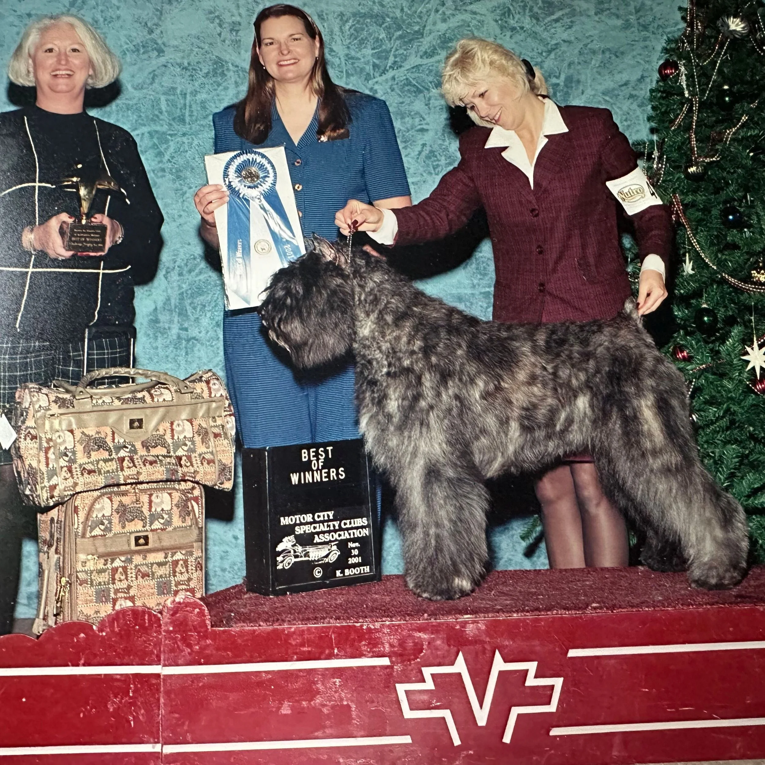 ![]()  My Experience with Glaucoma in DogsWhat do you do when your beautiful 2 year old Bouvier bitch develops glaucoma? After the shock and devastation of the diagnosis, all you can do is wonder how in world it happened. After all, I did my homework when it came to purchasing another Bouvier. I checked the health testing of both parents who passed all the required testing before breeding and bought my dog from a reputable breeder. I never dreamt that after 2 years I would be dealing with glaucoma. A month after my dog had a litter of puppies, I noticed she was irritable and didn’t want to be bothered by her puppies. When I went to check to see what was bothering her, I pulled back her fall to discover her one eve was completely blue. Icontacted my vet immediately and he referred me to an eye specialist in our area. He told me it was glaucoma and that it was urgent to get her to the specialist. Unfortunately, it was too late to save that eye and it had to be removed. The other eye, although high in pressure, was saved for several years with daily glaucoma pressure drops. Eventually, she would go completely blind and lived with her blindness until she was 10 years old. Because I had no clue where the glaucoma came from, I was never able to breed the 2 beautiful show puppies I kept from her litter. The eye specialist explained to me that Bouviers were very high on the list of dogs who develop glaucoma. After having Bouviers for over 15 years, this was a total shock to me. Never did anyone tell me about Bouviers and glaucoma. Breeders need to be forthcoming with this information ifthey know they have had issues with glaucoma. It’s important for all Bouvier owners to do gonioscopies on their dogs periodically and check their dogs eyes daily for any changes. I wish I had know all this when I bought my first Bouvier. It took this horrible experience to show me how much we need to educate the public about glaucoma in Bouviers and other breeds of dogs prone to this problem.